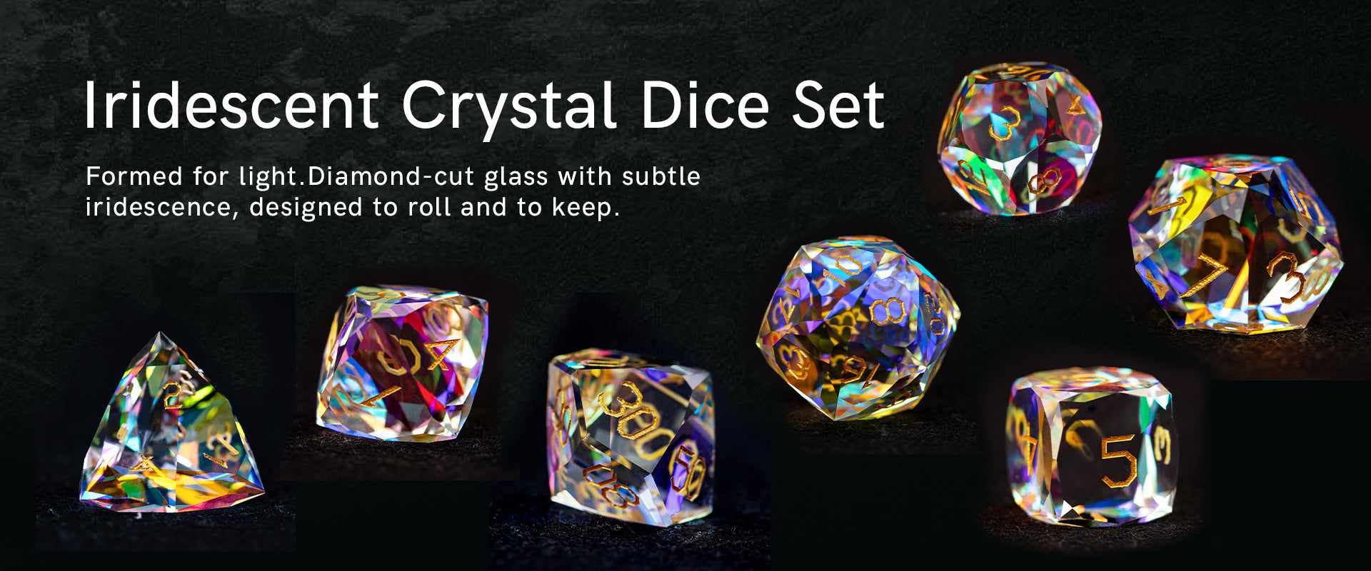 Iridescent Crystal Diamond-Cut 7-Piece Dice Set